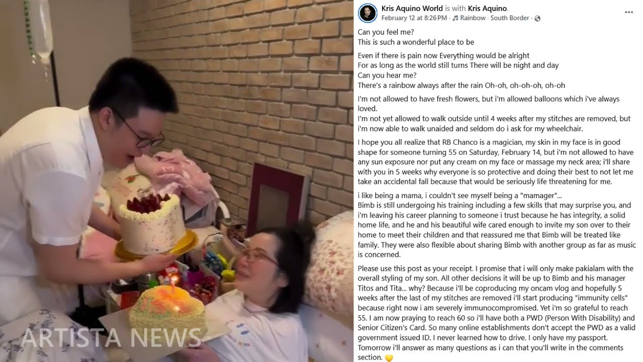 Noong Pebrero 14, ipinagdiwang niya ang kanyang ika-55 kaarawan—isang araw na dapat puno ng saya, ngunit sa ilalim ng karangyaan ng selebrasyon, naroon ang mahigpit na pangangalaga, mahigpit na disiplina, at mga patakaran na may malalim na dahilan. Sa kanyang post sa social media, ibinahagi niya ang bawat detalye: mula sa mga lobo, rainbow decorations, at maliliit na sorpresa, hanggang sa mga restriksyon na nakatali sa kanyang katawan. “Even if there is pain now, everything would be all right. For as long as the world still turns, there will be night and day,” wika niya—isang pahayag na simple sa unang tingin, ngunit puno ng kahulugan sa mga nakakaintindi sa kabuuan ng kanyang sitwasyon.